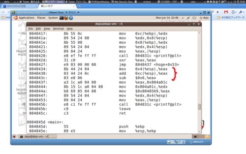 難読化関連を調べてて、こんな論文を見つけた。 「Obfuscation of Executable Code to Improve Resistance to Static Disassembly」 ほうほう、Junk Insertion ? なるほど、ぜんぜんわからん(英語) 具体例が記述されてて、 0x08048434 8b 44 24 04 mov 4(…